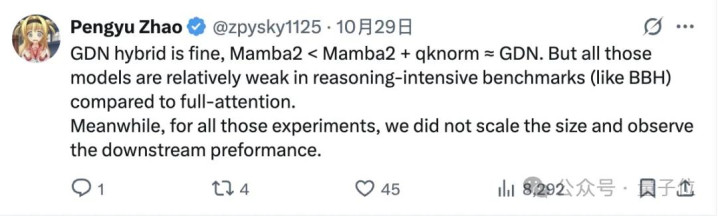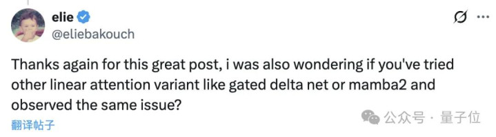 而且团队试过的路比想象中多得多,Blog下方有网友追问,是否尝试更多的Linear Attention变体,比如GDN或Mamba2。